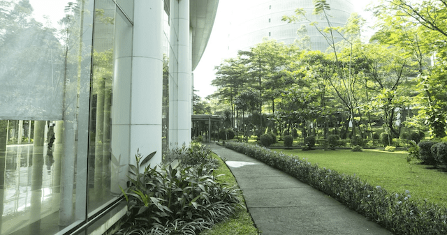 Green open spaces across the campus further contribute to energy efficiency by lowering the urban heat effect and reducing the cooling load within surrounding buildings. Projects such as the New Media Tower and the P.K. Ojong–Jakob Oetama Tower were both developed under these policies and have been recognized for meeting eco-friendly building standards in Indonesia.
