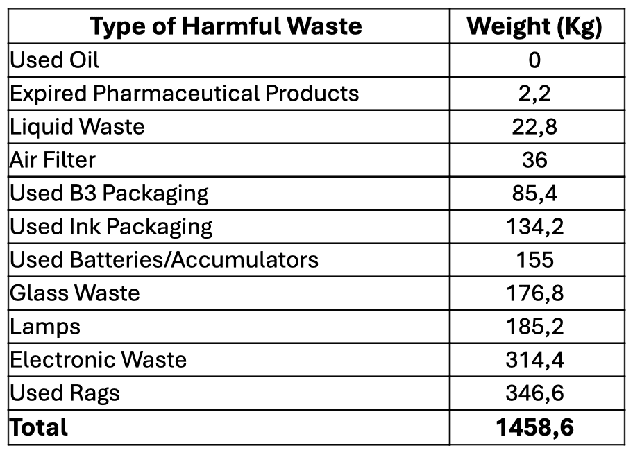 Please refer to the table below to see the volume of Hazardous Waste (B3 Waste) items recycled throughout 2024: