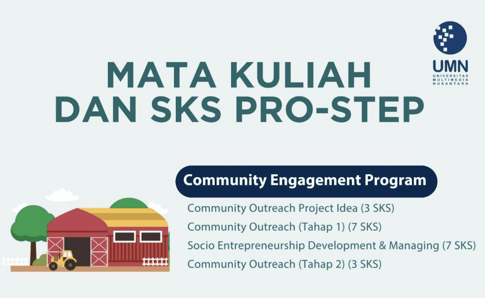 The Community Outreach Program is implemented as part of the Professional Step (Pro Step) initiative, where students engage directly with UMN’s partner villages (desa binaan) to support community development. Through this program, students contribute their knowledge and skills to empower local micro, small, and medium enterprises (UMKM), particularly in improving product packaging, marketing strategies, business management, and digital promotion.