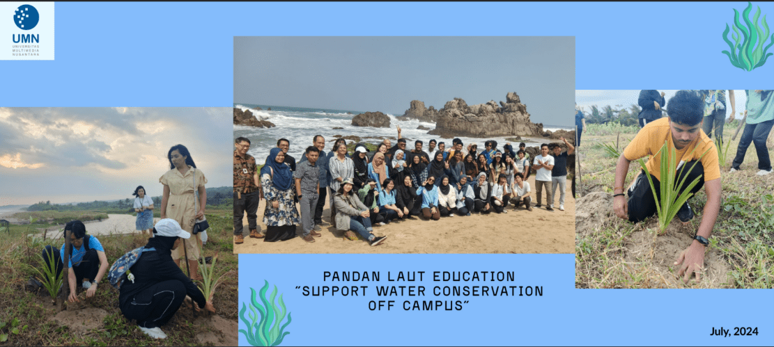 In July 2024, UMN’s lecturers and students conducted a community engagement program at SMAN 1 Panggarangan, Banten, educating students on the importance of Pandan Laut as a natural green belt for tsunami mitigation. Beyond disaster risk reduction, Pandan Laut plays a vital role in stabilizing coastal ecosystems, reducing erosion, filtering seawater intrusion, and supporting the preservation of groundwater quality in nearby communities.