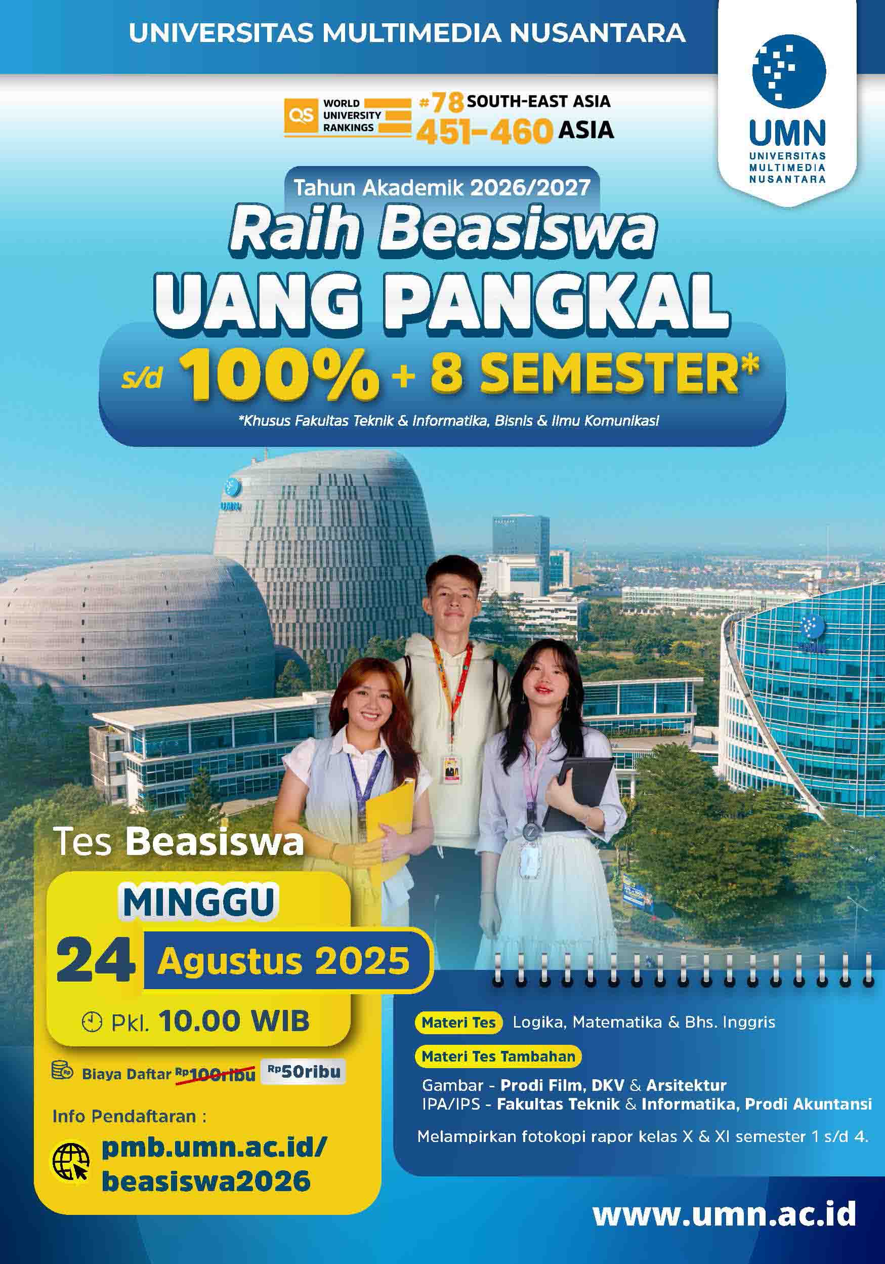 Yuk segera registrasi di ๐pmb.umn.ac.id/beasiswa2026๐