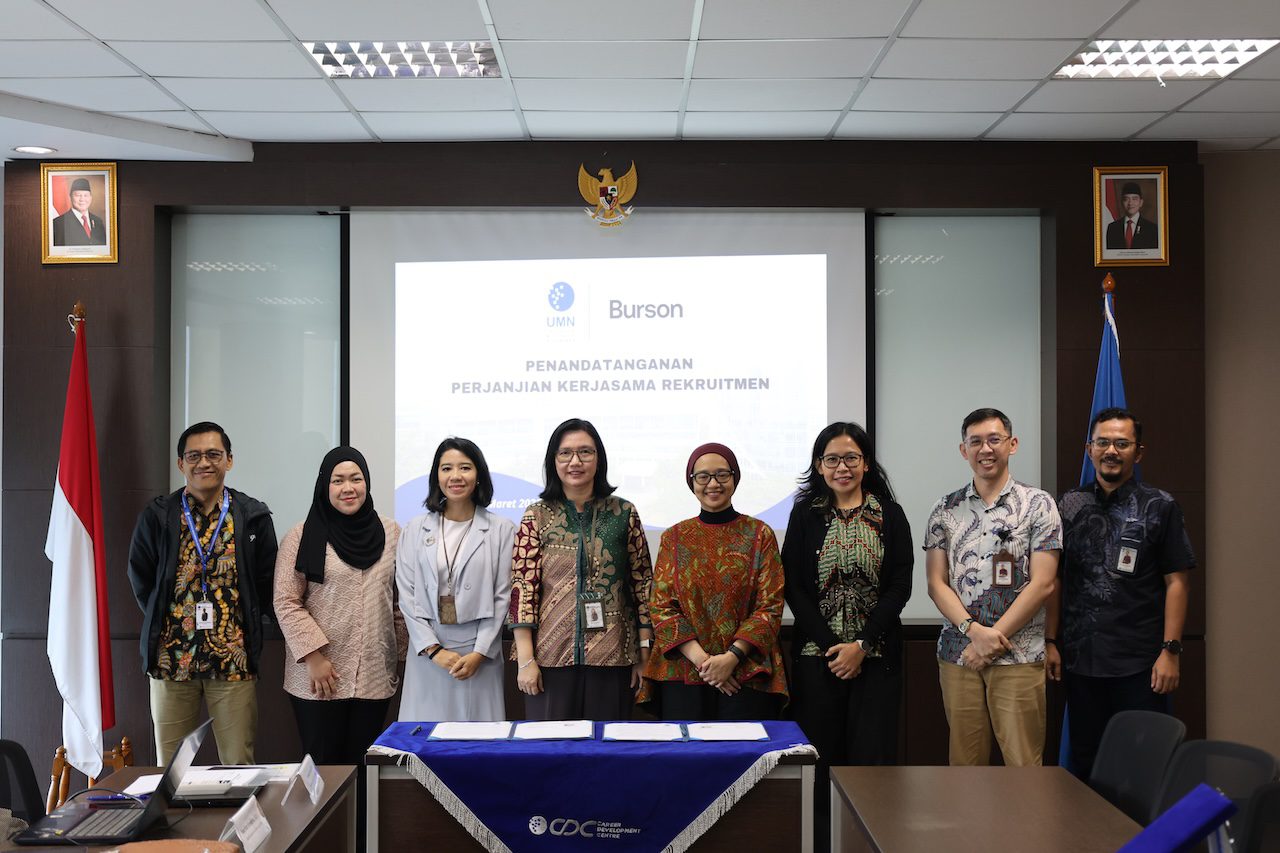 Tangerang, (05/02/2026) – Career Development Centre (CDC) UMN telah meresmikan kolaborasi rekrutmen bersama Burson Indonesia. Kolaborasi antara UMN dan Burson Indonesia nantinya akan berfokus pada program karir dan akademik mahasiswa, mulai dari rekrutmen, curriculum matching, dan kegiatan akademik lainnya untuk empat fakultas di UMN.