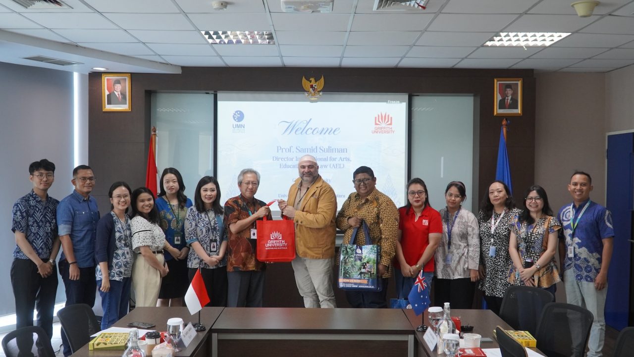 Tangerang, (10/10/2025) – Fakultas Seni dan Desain UMN mengadakan kuliah tamu yang dinarasumberi oleh Prof. Samid Suliman selaku Director International of Arts and Law, Griffith University. Kuliah tamu ini mengangkat topik mengenai “Intercultural Communication, Global Crisis, and Regional Futures”. Selain menambah pengetahuan, kuliah tamu ini juga membekali mahasiswa bagaimana komunikasi lintas budaya berjalan. Pertemuan ini juga dilengkapi dengan diskusi kolaborasi bersama rektorat UMN.