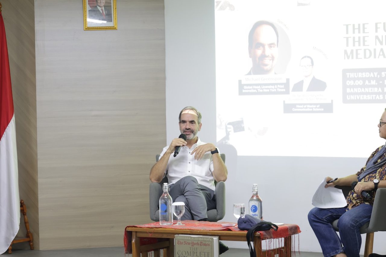 Tangerang, (05/02/2026) – Program studi Digital Journalism UMN menyelenggarakan kuliah tamu bersama The New York Times. Kuliah tamu bertajuk “The Future of The News and Media Industries”, dibawakan oleh Michael Greenspon selaku Global Head, Licensing & Print Innovation, The New York Times, dan dimoderatori oleh Dr. Ignatius Haryanto Djoewanto, S.Sos., M.Hum., selaku Kepala Program Studi Magister Ilmu Komunikasi.